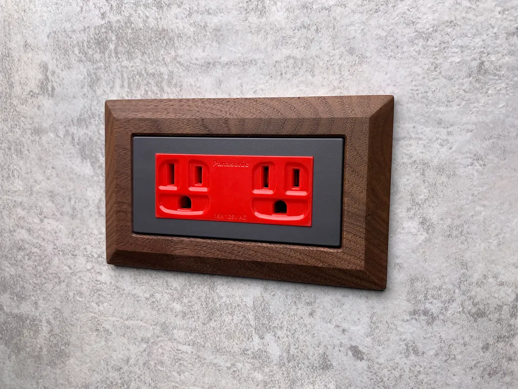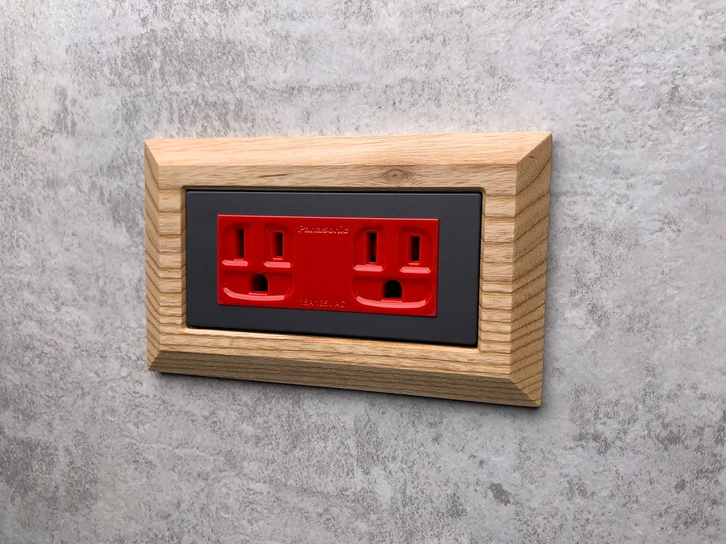 Bevel 實木面板 + 雙插座附接地 (緊急電源用)-5.5mm2絞線用 - 紅色 (RISNA灰色 ‧ GLATIMA 系列適用) (國際牌開關插座)